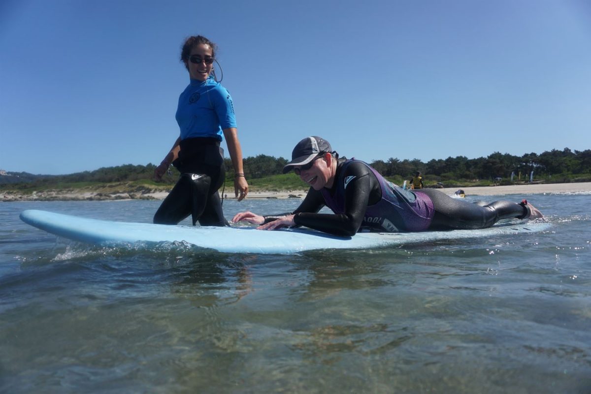 Y si no, que se lo digan a Elena, con el síndrome de Ehlers-Danlos y participante en la escuela de ciclismo en el Parque Juan Carlos I de Madrid que realizamos dos veces por semana. Fue muy emocionante ver cómo retomaba su gran pasión, pues siempre había hecho natación artística y no había podido meterse al agua desde hace tres años, por lo que su «bautizo de surf» fue muy emotivo y alguna lágrima de alegría también hizo su aparición.