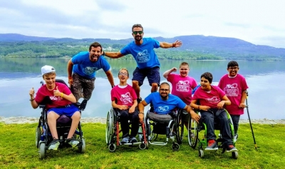 8 personas con discapacidad han disfrutado de 5 días en la playa portuguesa de unos cursos de iniciación al surf adaptado en los que han compartido olas con integrantes del equipo de parasurf Fundación También-Almar Consulting.