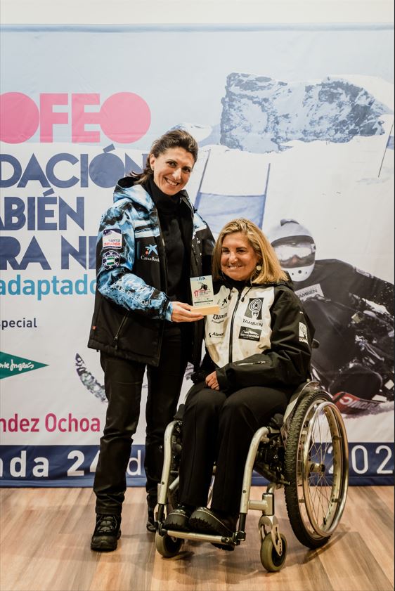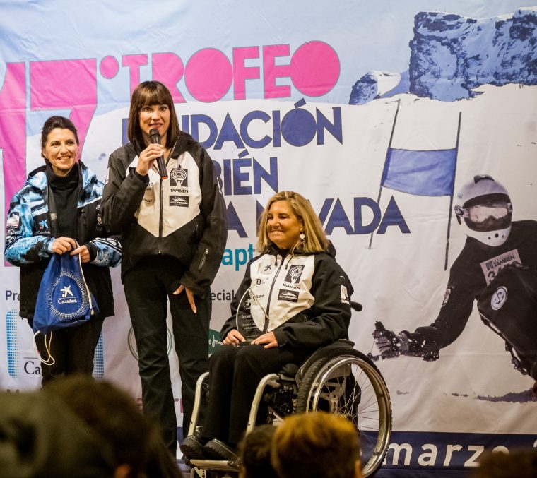 Nuestra Presidenta y Fundadora, Teresa Silva, presentó un merecido Premio CaixaBank a la superación otorgado a Irene Villa, perteneciente al «Equipo de Competición Fundación También de Esquí Adaptado«, por su perseverancia, valentía, amor por el esquí y ser una de las primeras alumnas en esquiar sentada con Fundación También. Irene, que recogió el premio de manos de Rosa Márquez, Directora de Instituciones de CaixaBank, visiblemente emocionada, aseguró que ella había superado muchos miedos y que había conseguido cambiar el miedo por la adrenalina, ya que ahora disfruta muchísimo del esquí adaptado y la competición, y trasladó su agradecimiento tanto a Teresa Silva como a la Fundación También por hacerlo posible.