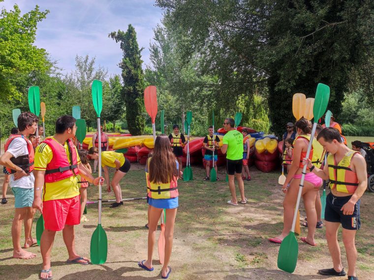 El tercer día, todos y todas nos pusimos los chalecos para practicar piragüismo en Aranjuez. No hizo falta ser un experto palista ya que tuvimos las explicaciones claves para poder salir a remar como auténticos remeros.