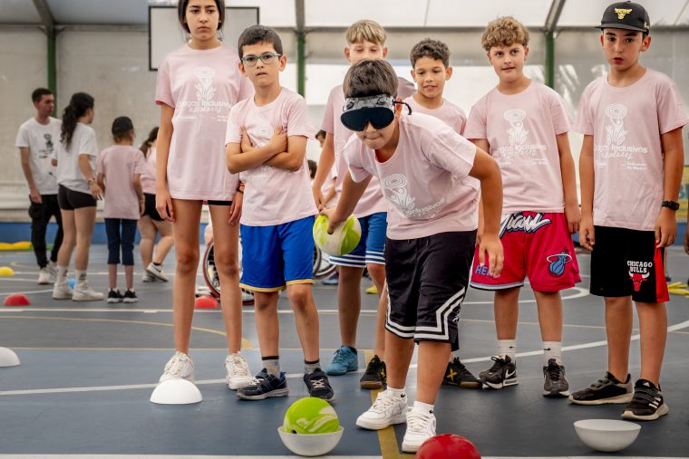 «No creía que era tan fácil», nos contaba uno de los niños que realizaba la actividad de bolos para discapacidad visual y es que el apoyo de otro compañero dando palmadas le ha facilitado posicionarse y hacer un semipleno que ni él mismo creía. «Todo es más sencillo si nos ayudamos unos a otros», decía su compañero. ¡La fuerza de la colaboración y la empatía en estado puro!.
