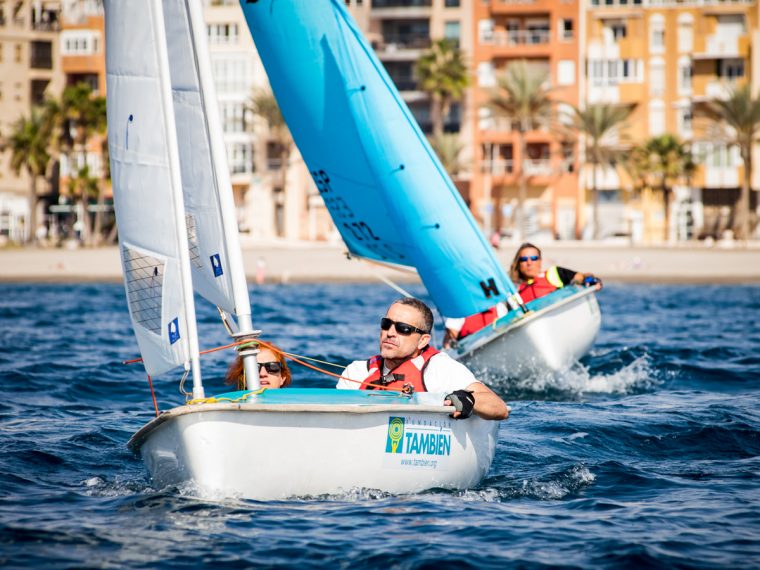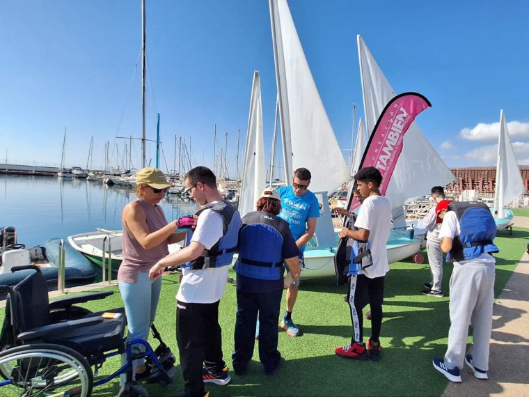 Dentro del Programa «Vela Inclusiva» de la Real Federación Española de Vela, que se desarrolla en diversos enclaves del territorio español, Fundación También realizamos, entre los días 5 y 7 de noviembre, un curso de vela adaptada en Almería, en colaboración con el Club de Mar Almería, en el que personas con discapacidad pudieron disfrutar de la experiencia de navegar, de las olas y de la brisa, supervisados en todo momento por los técnicos de ambos clubes.