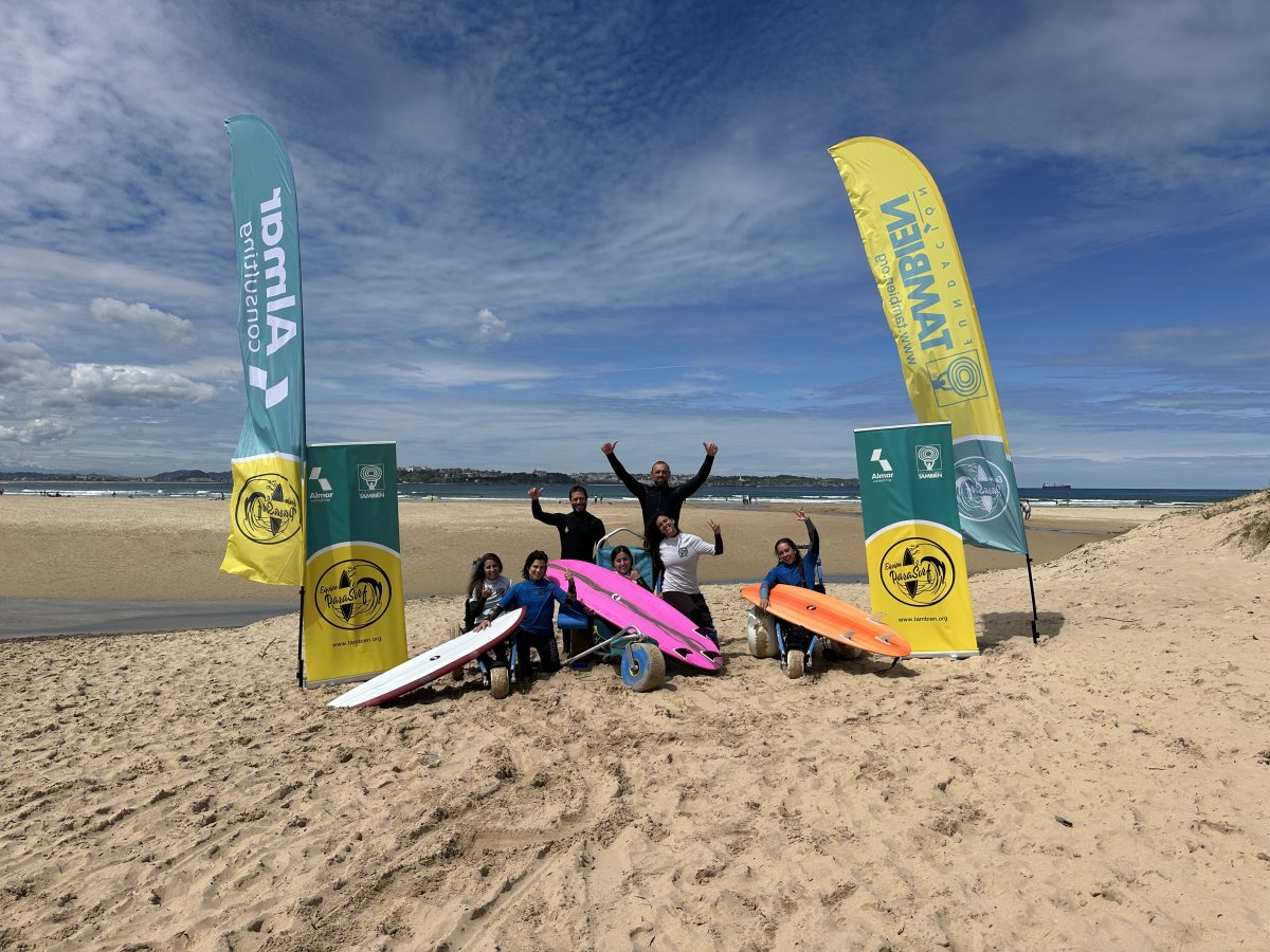 Comenzamos la temporada de surf para surcar las olas con el “Equipo de Parasurf Femenino Fundación También – @almar_consulting”. Un puente de mayo en el que las componentes del equipo,Mireia Cabañes @eme_cabanyes , Audrey Pascual @audreypascual_ , Paloma Oñate @palomyta , María Díaz @mary.diaz_27 y Mara Zabala @rockingwheels, han podido retomar tanto las clases teóricas como la práctica de este deporte para seguir avanzando en la técnica.