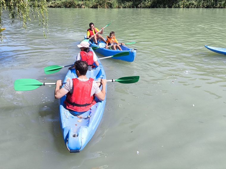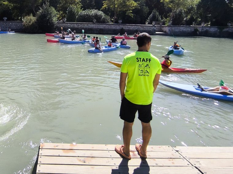 Hacer una travesía en piragua por el río Tajo, una soleada mañana de domingo desde el Club de Piragüismo de Aranjuez, es de los mejores planes que se pueden hacer en familia o con amigos. Y eso hicimos en Fundación También. El pasado domingo 14, organizamos un raphel de 5 km por el Tajo, una travesía sin dificultad en la que pudimos disfrutar de los Jardines Reales de la Isla y del Príncipe, los Embarcaderos Reales, el Palacio Real y sus paseos arbolados en piragua adaptada. Participaron chavales con y sin discapacidad con sus familias, que no dudaron ni un momento en subir a las embarcaciones y palear por el río, entre risas y caras de emoción.