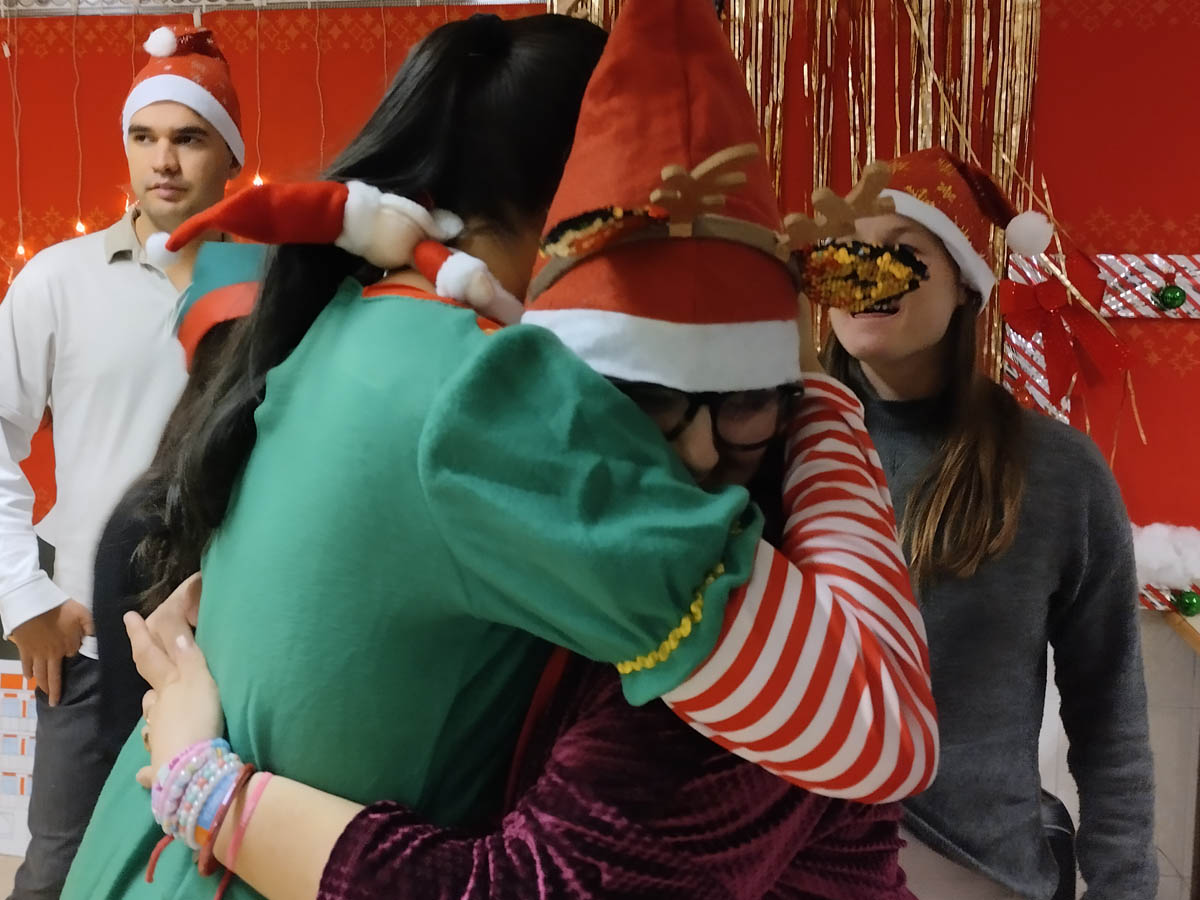 Por último, uno de los momentos más esperados fue el de las pre-campanadas, en el que todos contamos las campanadas acompañados de 12 golosinas, no sin antes una explicación tan cómica como efectiva de cómo tomárnoslas sin equivocarnos. Luego nos fundimos en un abrazo colectivo y hubo un brindis lleno de emoción y esperanza para el 2026, donde, con alegría, nos deseamos mutuamente lo mejor para el próximo año. Definitivamente un momento de unión y lleno de buenos deseos para todos.