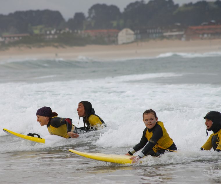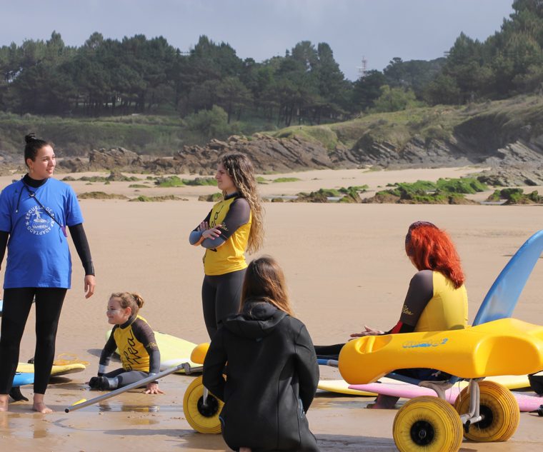 El último fin de semana de abril nos fuimos a la Playa de Somo en Cantabria para disfrutar de un curso de iniciación de parasurf con 7 beneficiarios con discapacidad de nuestra Fundación. Nos acompañaron también 2 familiares sin discapacidad que no se quisieron perder la oportunidad de practicar surf y 3 de las integrantes del Equipo Femenino de Parasurf Fundación También-Almar Consulting, Mireia Cabañes, Mara Zabala y María Díaz, que junto a sus entrenadores Mikel y Alex, aprovecharon para practicar y mejorar su técnica.
