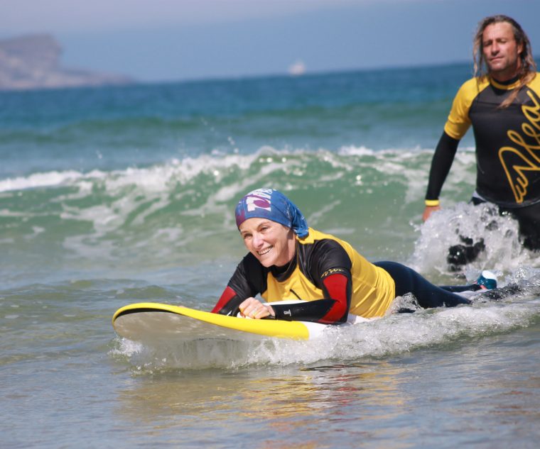 Practicar surf, al igual que cualquier actividad física placentera, mejora el estado de ánimo y genera sentimientos de felicidad entre las personas que lo practican y si además, se une el componente de tener alguna discapacidad, la sensación de logro, de liberación y empoderamiento, produce un bienestar mental y emocional que queda patente en todos los beneficiarios que nos acompañan cada vez que hacemos una salida al mar.