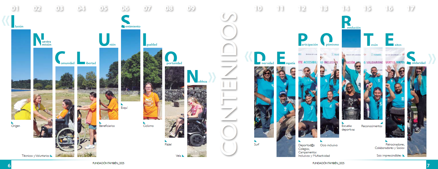 La FUNDACIÓN TAMBIÉN es una organización sin ánimo de lucro, que trabaja desde 2001 promocionando el deporte adaptado entre el colectivo de personas con cualquier tipo o grado de discapacidad, así como por el fomento de valores educativos e inclusivos. La Fundación También organiza diferentes programas de deporte adaptado en distintos puntos de España, cuenta con material y monitores especializados, y subvenciona gran parte del coste total de las actividades que desarrolla, gracias al apoyo de empresas patrocinadoras y colaboradoras.