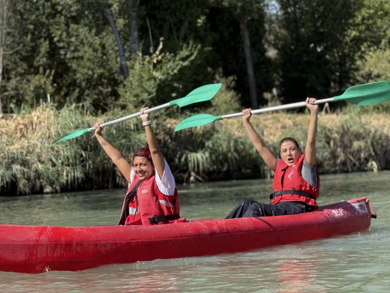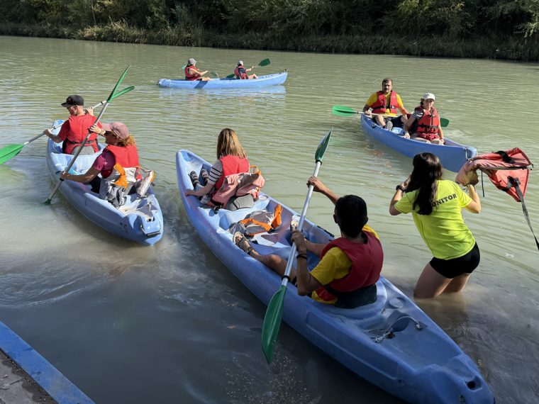 Los técnicos de Fundación También organizaron el fin de sábado día 4 un descenso controlado en piragua por el río Tajo, a su paso por Aranjuez, en la que participaron 13 personas con diferentes discapacidades, a los que acompañaron familiares y amigos que no se lo quisieron perder. Contamos también con el apoyo de 10 voluntarios de Mapfre, que quedaron encantados con la experiencia.