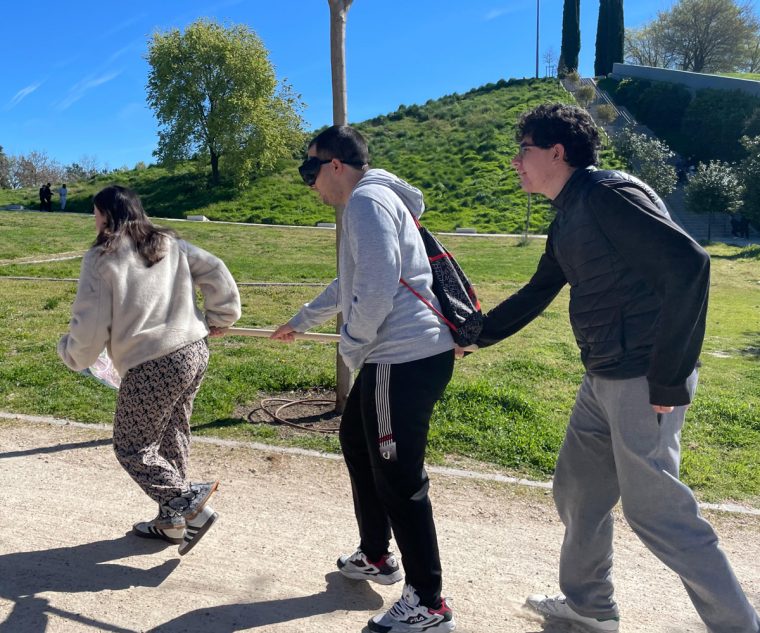 Divididos en tres grupos, los participantes comenzaron la jornada sumergiéndose en una experiencia de sensibilización a través del senderismo guiado. Al meterse en el rol de personas con discapacidad visual, el entorno se transformó por completo. Sin el sentido de la vista, el camino se convirtió en un únicamente sonidos, texturas y sensaciones. Experimentaron de primera mano la necesidad de confiar plenamente en sus compañeros guías para recorrer cada paso del trayecto con éxito y seguridad.