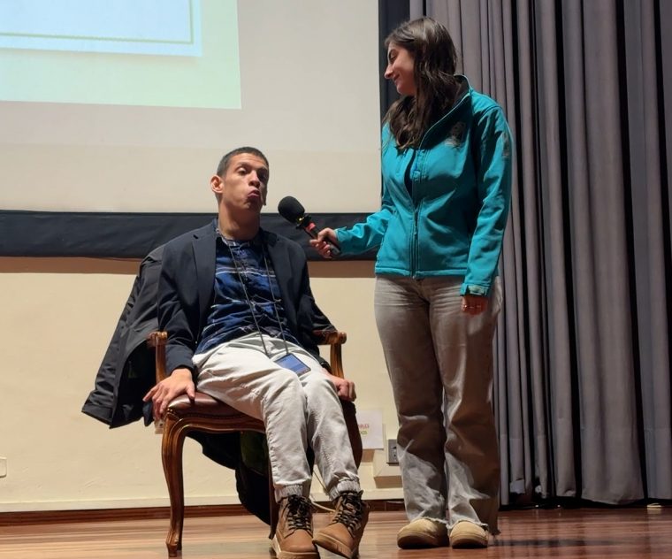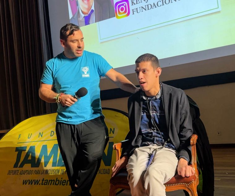 Además, el tema de este año era como mejorar la comunicación y el trato a nuestros beneficiarios. Ahí estaba nuestro beneficiario Kenji, que teniendo daño cerebral y con su soporte técnico, además de la ayuda de nuestra compañera Paula, se hizo entender a la perfección. Kenji hablaba de la importancia de escucharlos, de preguntarlos, dejarlos decidir lo que quieren hacer, respetar su autonomía y acompañarlos. Al final, como dice Kenji, el voluntario no le quita las piedras a la montaña, pero le ayuda a poder subirla y en su vida ha sido esencial esa ayuda. Desde Fundación También lo tenemos claro, como dijo nuestro compañero Andrés Santos: «No hay discapacidad. Hay personas» y el trato hacia ellos debe ser igual que hacia cualquier otra persona.
