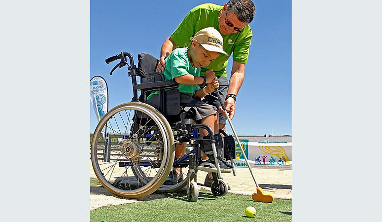 Por eso, los lunes, martes y sábados en el Golf Park La Moraleja nuestra escuela está siempre a pleno rendimiento. El Trofeo Fundación Konecta V Open Comunidad de Madrid Fundación También, que ha tenido lugar del 27 al 29 de septiembre en la madrileña Ciudad de la Raqueta, se ha convertido en uno de los más importantes del circuito nacional. Cerca de cuarenta deportistas con discapacidad llegados de muy diferentes puntos del país dieron sus mejores golpes a pesar de la constante amenaza de lluvia. Gran ambiente y un altísimo nivel de juego que se tradujo en encuentros muy largos ante la igualdad de los competidores. Se disputaron más de una treintena de partidos en los que se impuso la madrileña pareja formada por Oscar Agea y Rubén Castilla, seguidos del albaceteño José Manuel Serrano y el onubense Carlos Vizcaíno. El tercer puesto fue para Miguel Ángel Muñoz y Francisco Javier Hurtado.