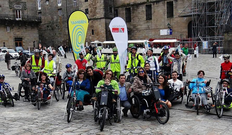 Y aún en la retina tenemos otro de los grandes momentos del año sobre ruedas: El Camino de Santiago. Por décimo año consecutivo disfrutamos de kilómetros de superación, en esta edición posibles gracias al apoyo de Fundación Adecco. Un viaje único en el que sentimos el calor de las gentes de Galicia y donde siempre contamos con el recibimiento de las autoridades. Y otra de las últimas novedades, una mañana de ciclismo inclusivo por Madrid Río y los voluntarios de Johnson Controls. La Fundación También cuenta con todo tipo de bicicletas adaptadas, algo que es posible gracias al patrocinio de Fundación Repsol. Y no olvides que todos los sábados, en nuestra sede permanente en el Parque Juan Carlos I de Madrid, puedes seguir pedaleando. Porque se trata del único centro de estas características que existe en nuestro país y en donde se puede practicar toda una batería de deportes adaptados: ciclismo, piragüismo, baloncesto, boccia, tenis de mesa… y que abre durante todos los miércoles y sábados mientras el tiempo lo permite.