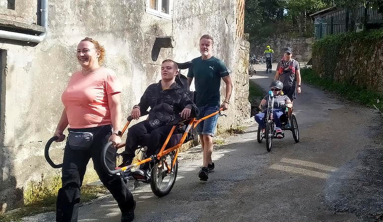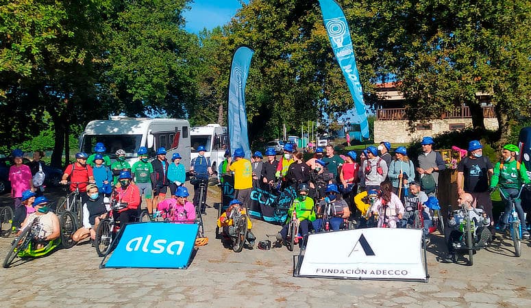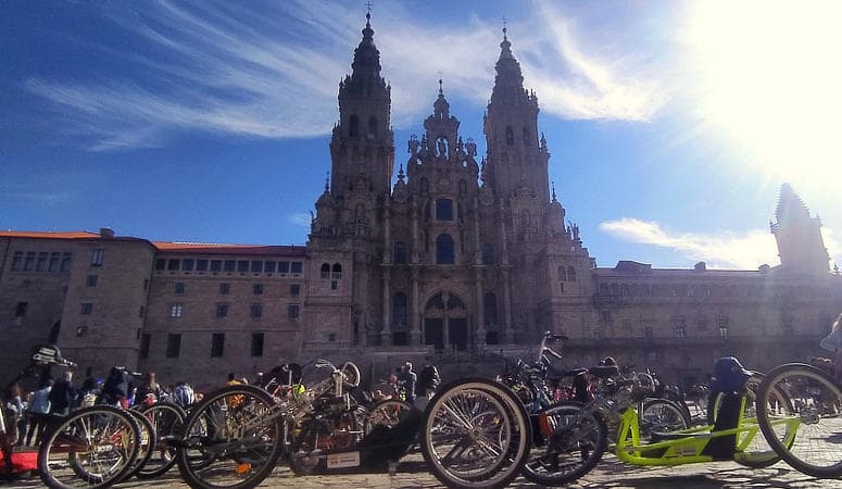 Handbikes, triciclos adaptados, tándems, joëlettes y bicicletas convencionales recorrieron los 40 kilómetros del Camino de Santiago y los peregrinos de Fundación También fueron recibidos por la directora General de Juventud, Participación y Voluntariado, Cristina Pichel, quien alabó el ejemplo de superación del medio centenar de personas con discapacidad que finalizaron con éxito el Camino.