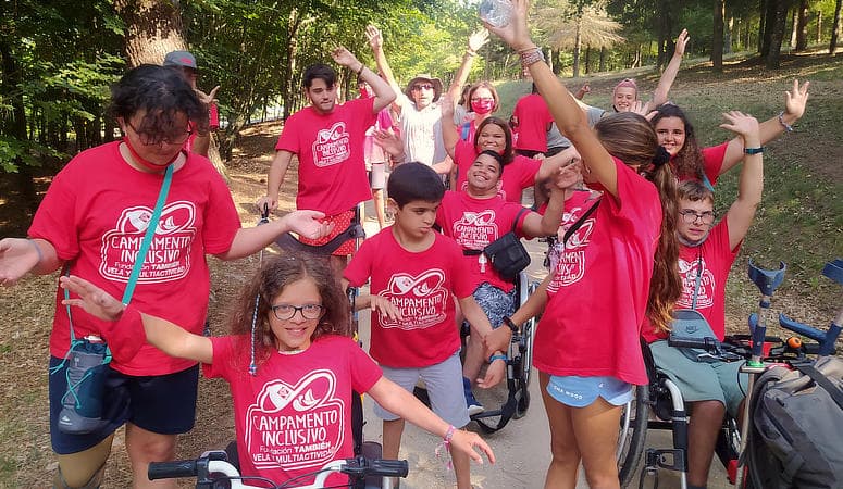 Días colmados de mucho deporte adaptado; con deportes náuticos como vela, piragüismo, natación sin olvidar los reñidos partidos baloncesto en silla, la práctica de tiro con arco, juegos de tenis de mesa o paddle a los que se incluyeron mucha, mucha diversión con juegos, talleres de chapas o disfraces. Este año además del descanso y juegos en la piscina, Fundación También organizó los fantásticos Juegos Campalímpicos y se clausuró con un divertidísimo broche de oro conla súper fiesta de disfraces con propuestas libres. El Campamento Inclusivo de Vela y Multiactividad es un importante respiro familiar para muchos padres que viven día a día el cuidado de sus hijos con discapacidad, que en muchos casos es severa, y además es una gran oportunidad para familias con escasos recursos económicos para que estos pequeños disfruten al máximo gracias al apoyo de Fundación Arpe, Inditex y Grupo MásMóvil.