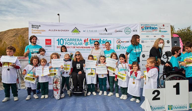 El 7 de noviembre la marea azul de la gran familia de runners de Fundación También inundó de sonrisas y felicidad, el entorno de Valdebebas, a golpe de zancada y pedales en la carrera más comprometida por la inclusión. Un año más y sin faltar a la cita, la carrera, organizada por la Fundación También, con la dirección técnica de Mapoma, contó con el apoyo de la Comunidad de Madrid, Ayuntamiento de Madrid y Madrid Foro Empresarial. El momento más esperado se produjo con el pistoletazo de salida que llevó a cabo Irene Villa, madrina de la carrera, y que daba comienzo a las carreras de 10 y 5 kilómetros junto a Teresa Perales, galardonada con el Premio Princesa de Asturias de los Deportes, medallista paralímpica y embajadora Renault siemprea compañados por la personalizada voz del speaker, Michi Primo de Rivera.